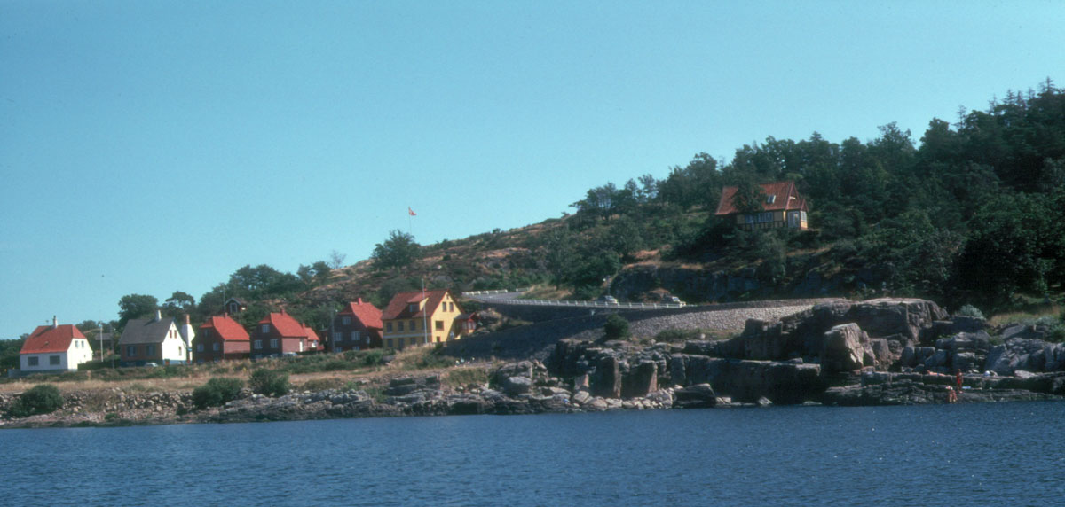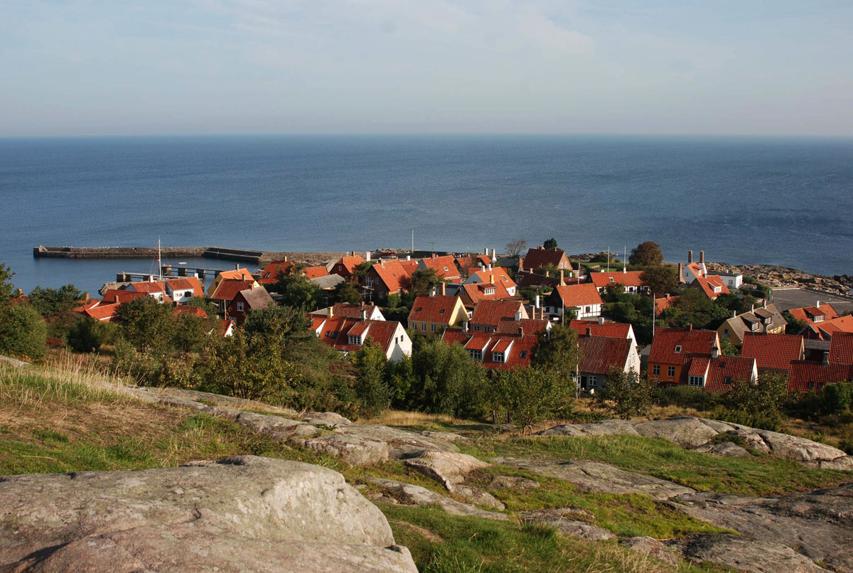 Kommer man sejlende til Gudhjem langs kysten fra nordvest ser man øen stige jævnt skrånende fra havet - en "rundklippe", formet af isen og som typeeksempel som "skåret ud af en bog".