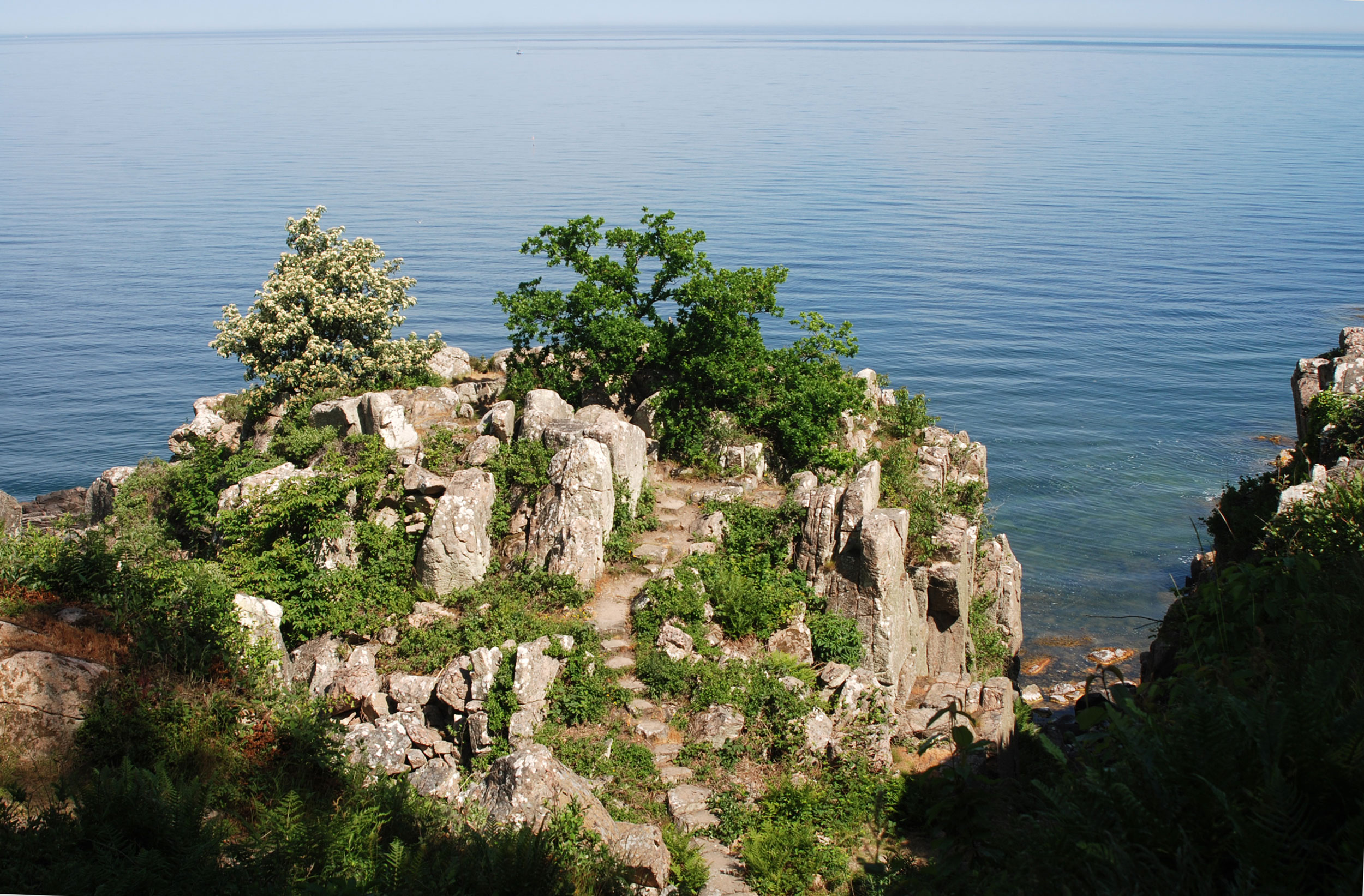 Videre forbi Holma Hodda går stien forbi Ravneskåret og Røverborgen samt Røverskæret til de fire Bautasten Hestestene, hvorfra der er en flot udsigt ud over Salenebugten.