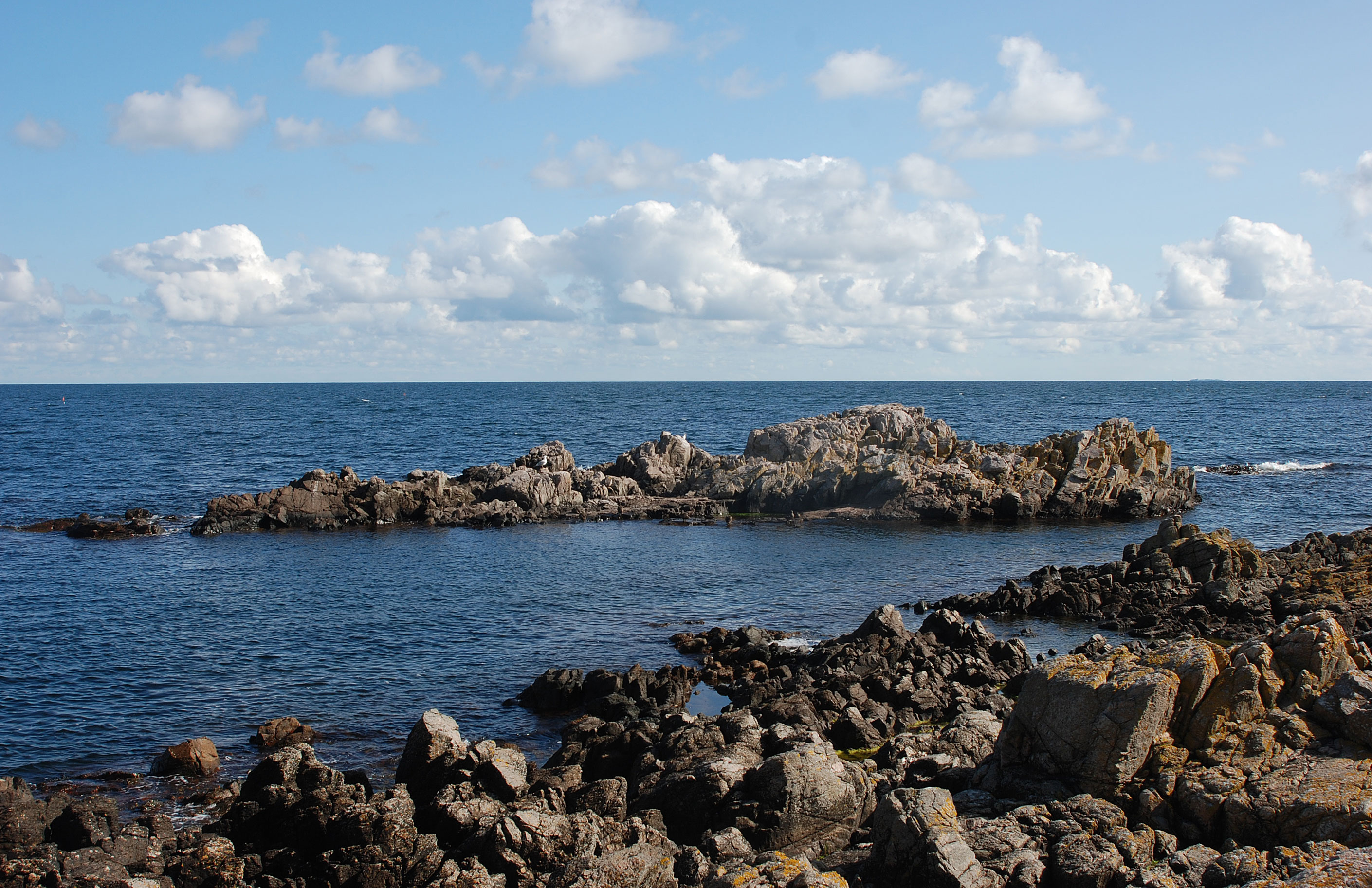 Dækmolen er ikke lige, men har et knæk midt på, og det er her Ræveskær'et har ligget siden isens tid og brudt bølger.