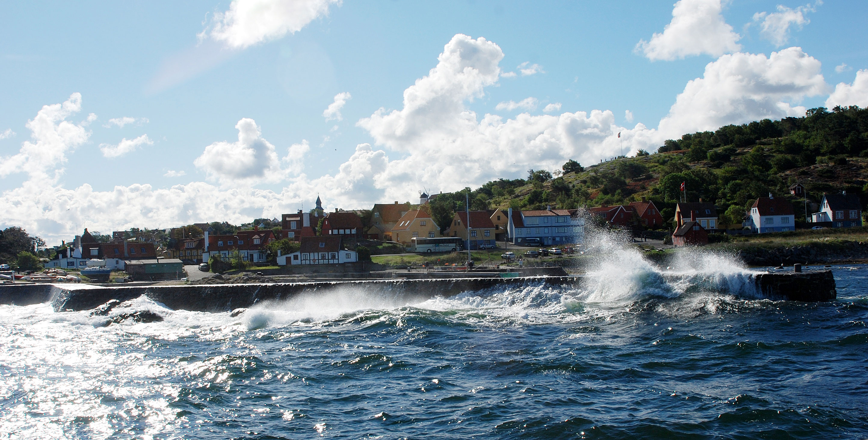 Nørresand havn er med sin dækmole således indrettet, at her kan skibene søge læ, når pålandsstorm forhindrer dem i at komme ind i Gudhjem havn.