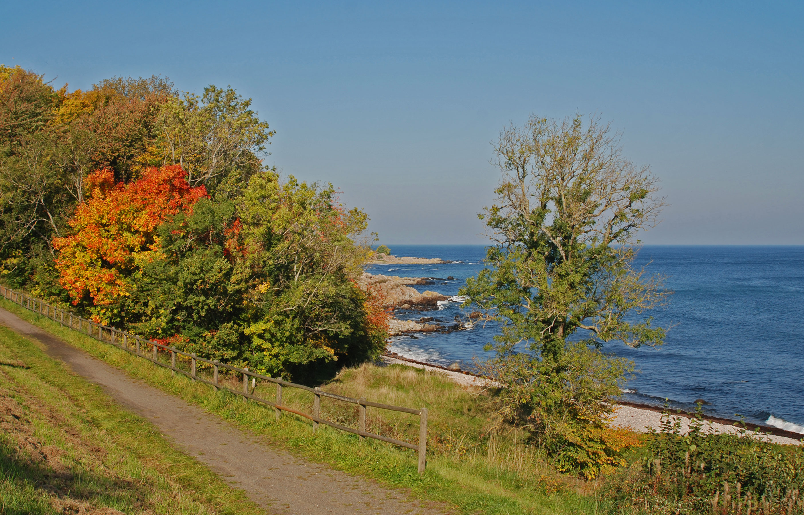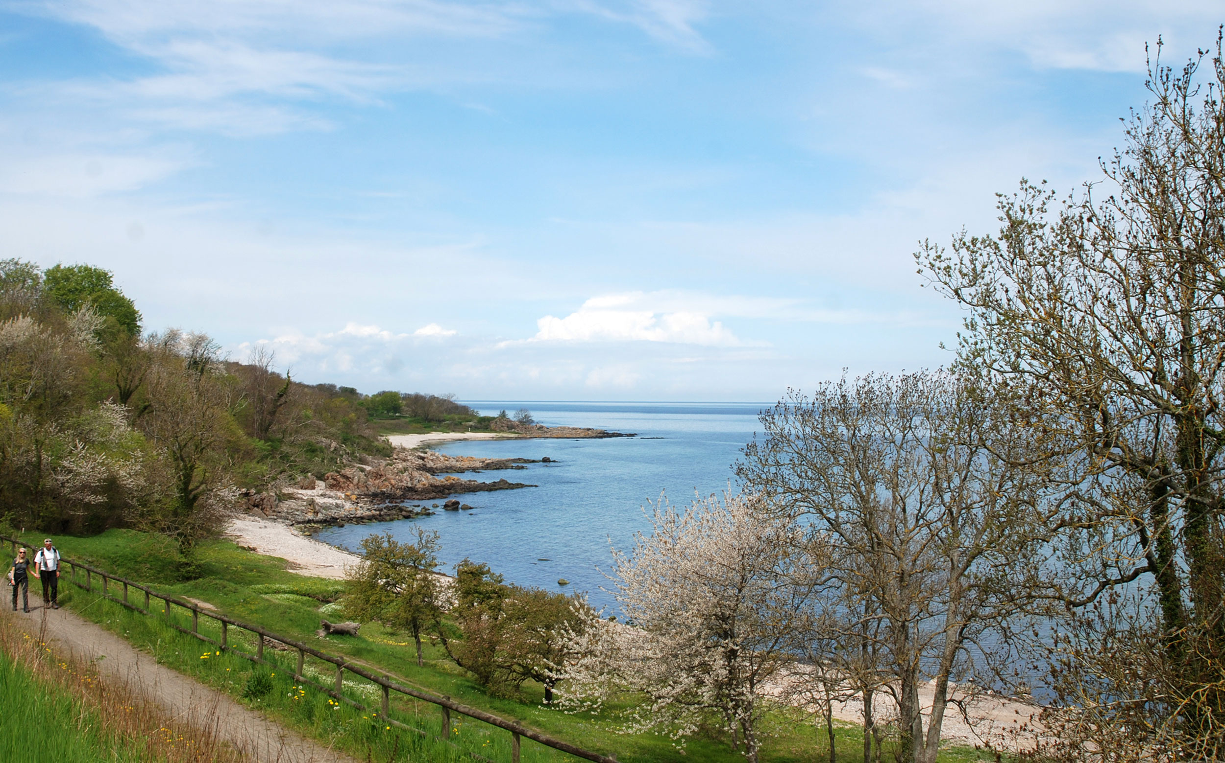 Kystlandskabet ud for Døndalen i maj 2021 - i kirsebærtræernes blomstringstid