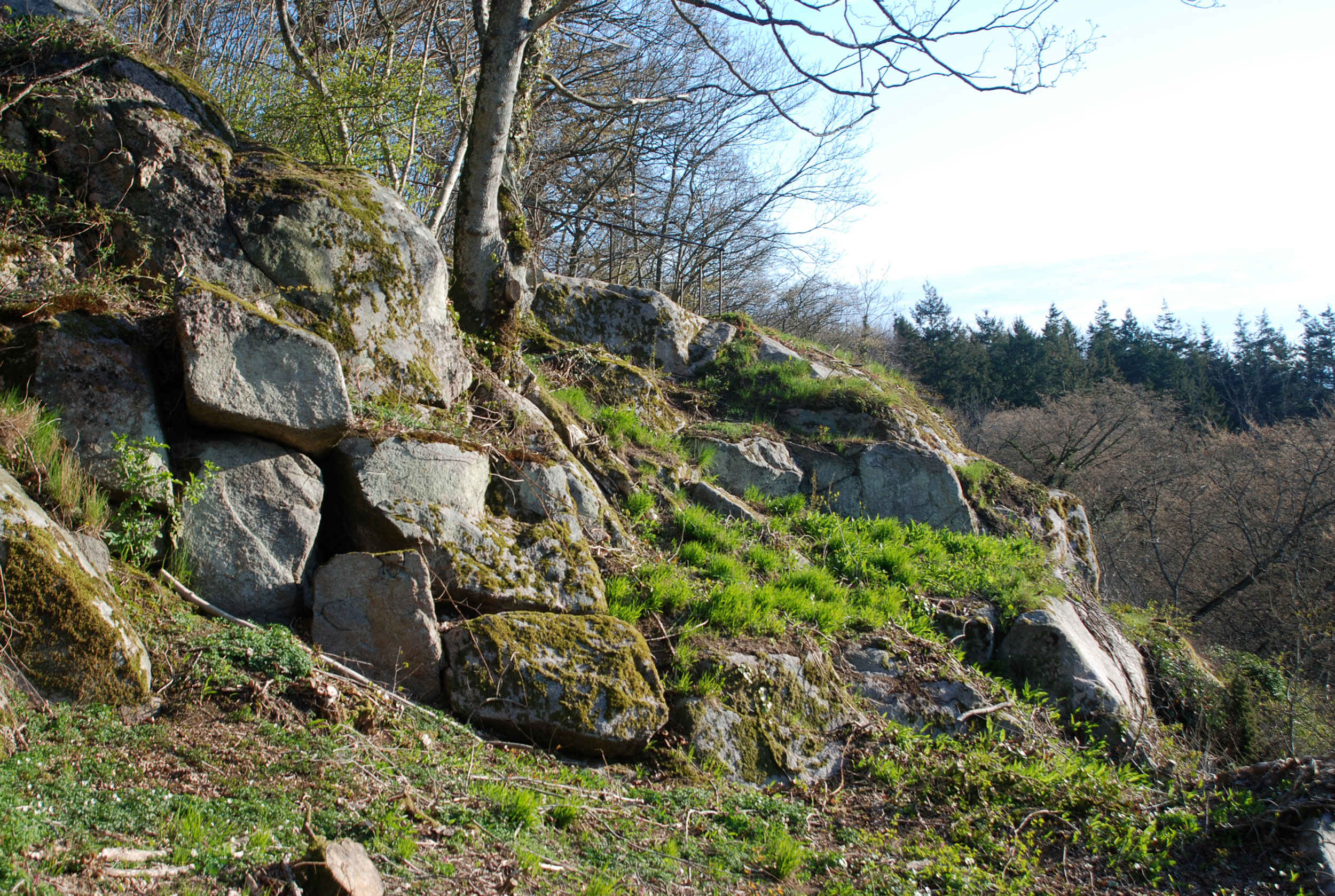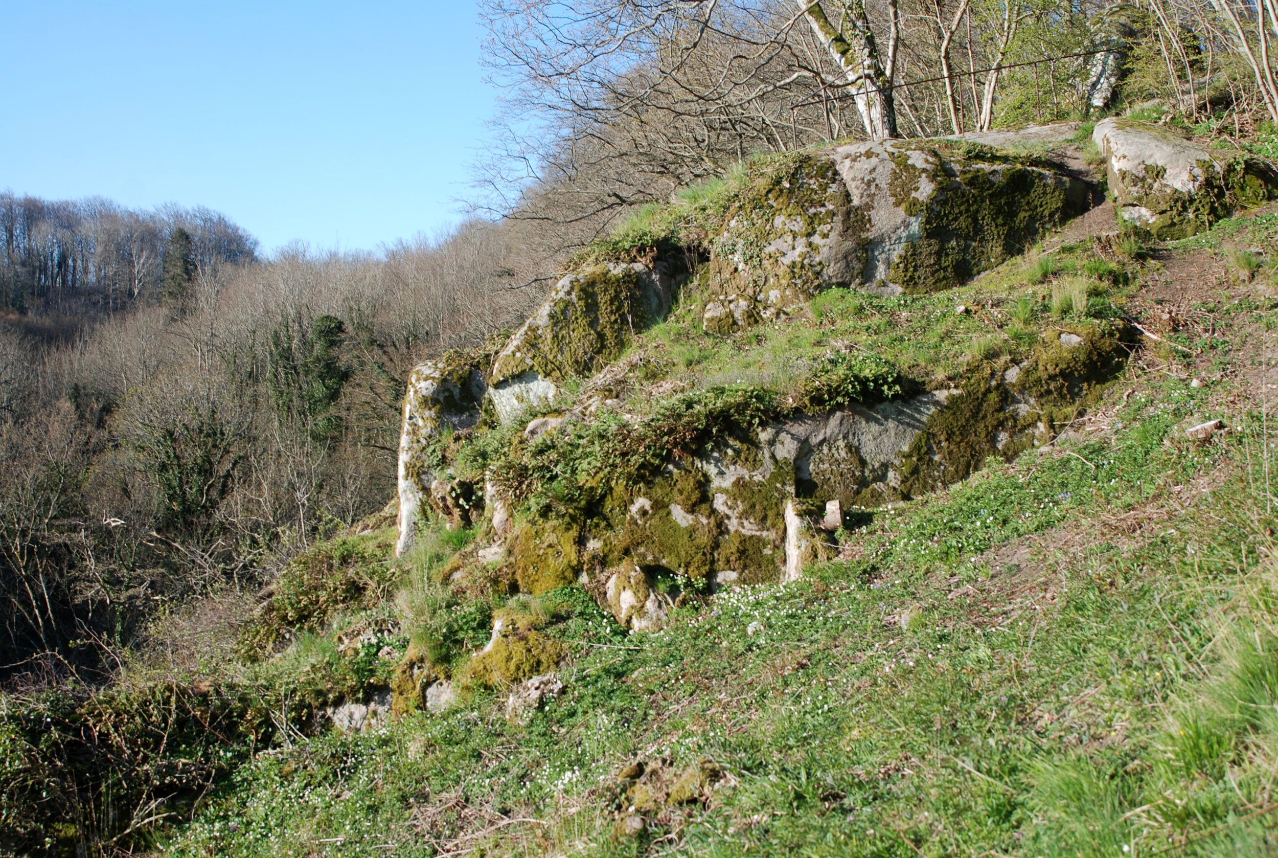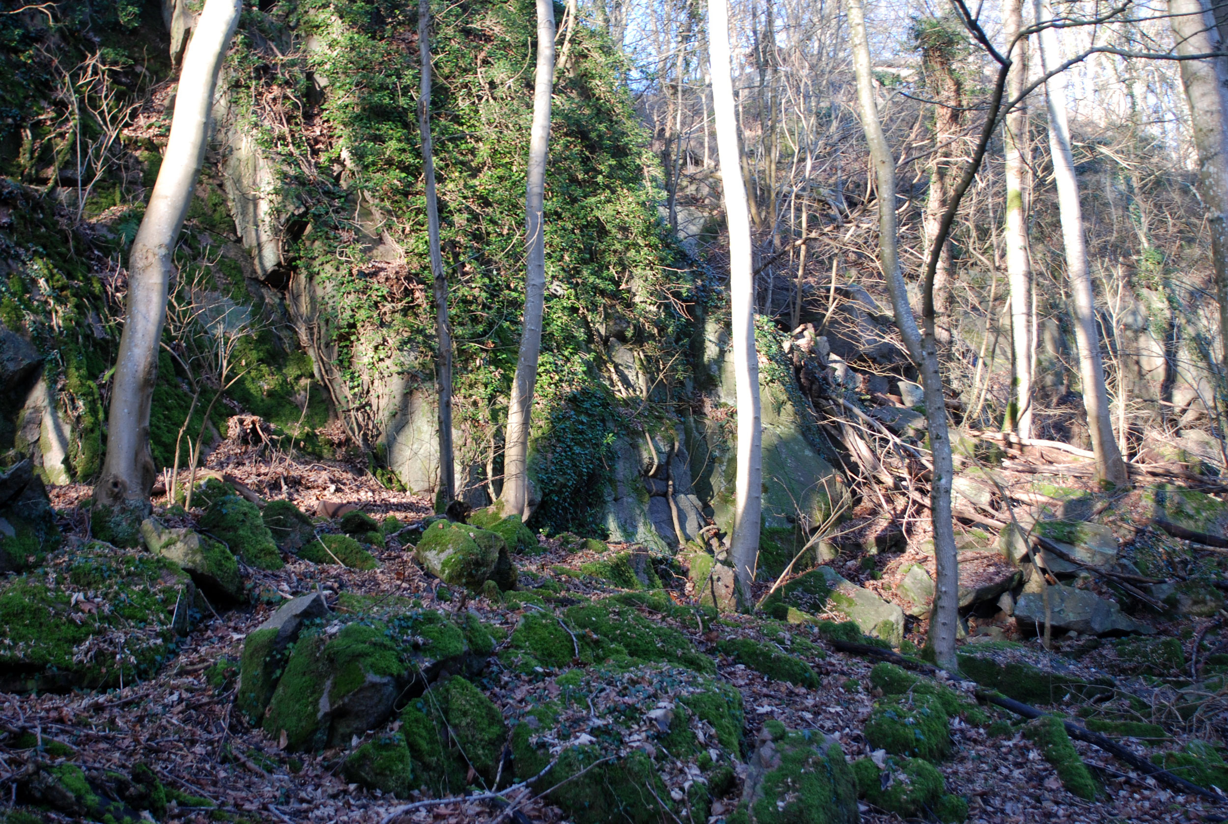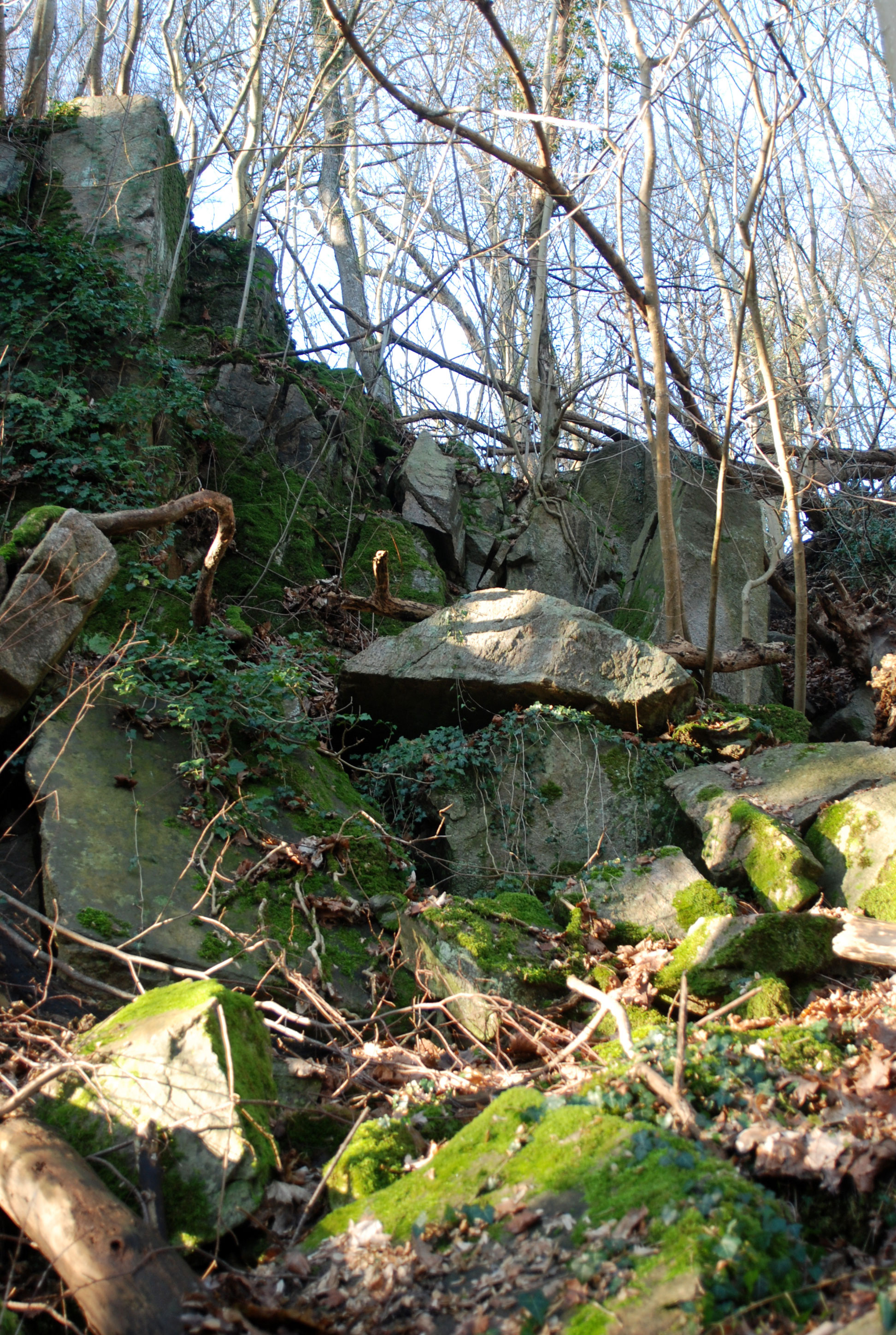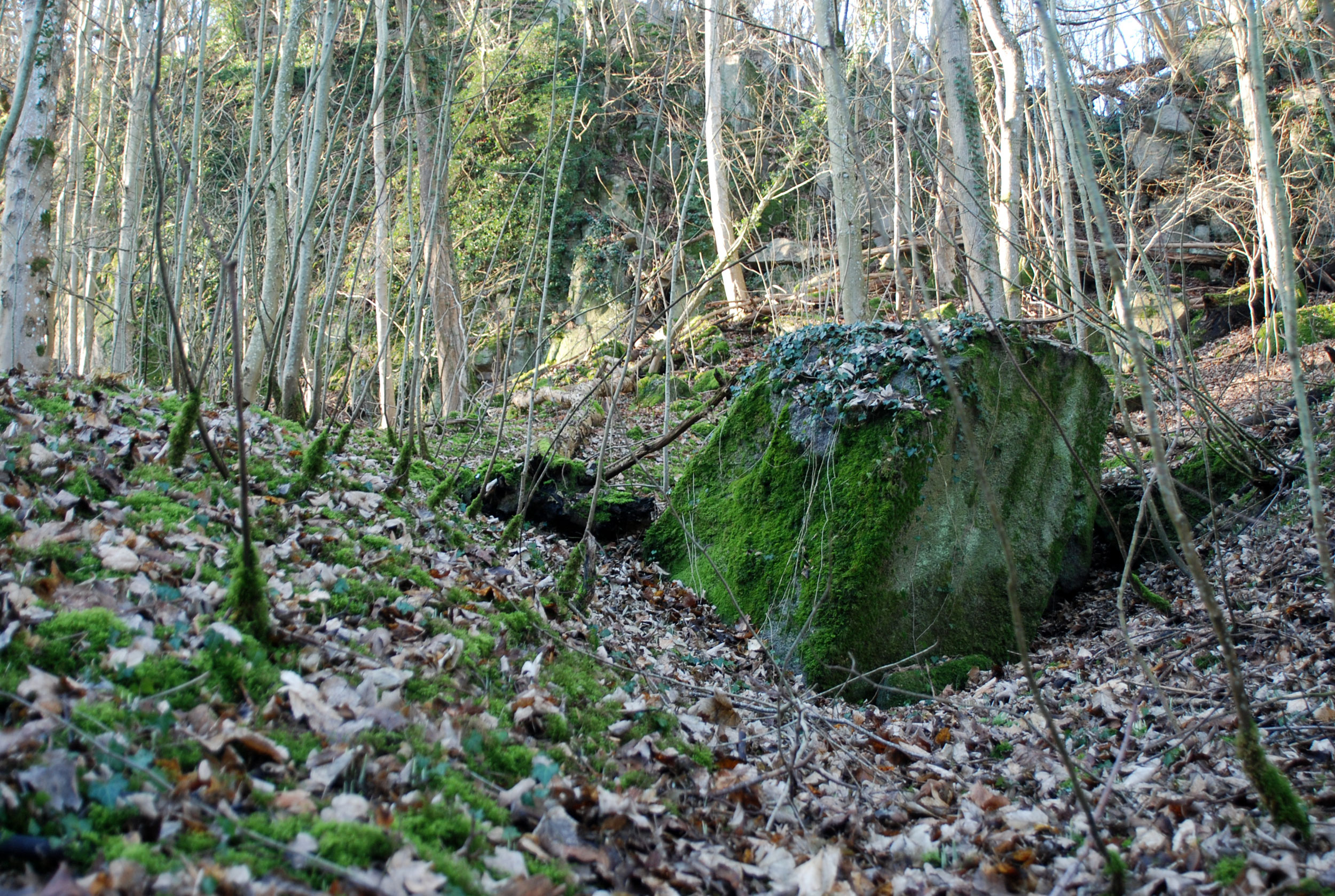 Et større antal klippeblokke ligger fortsat i dalen ved det tidligere stenbrud