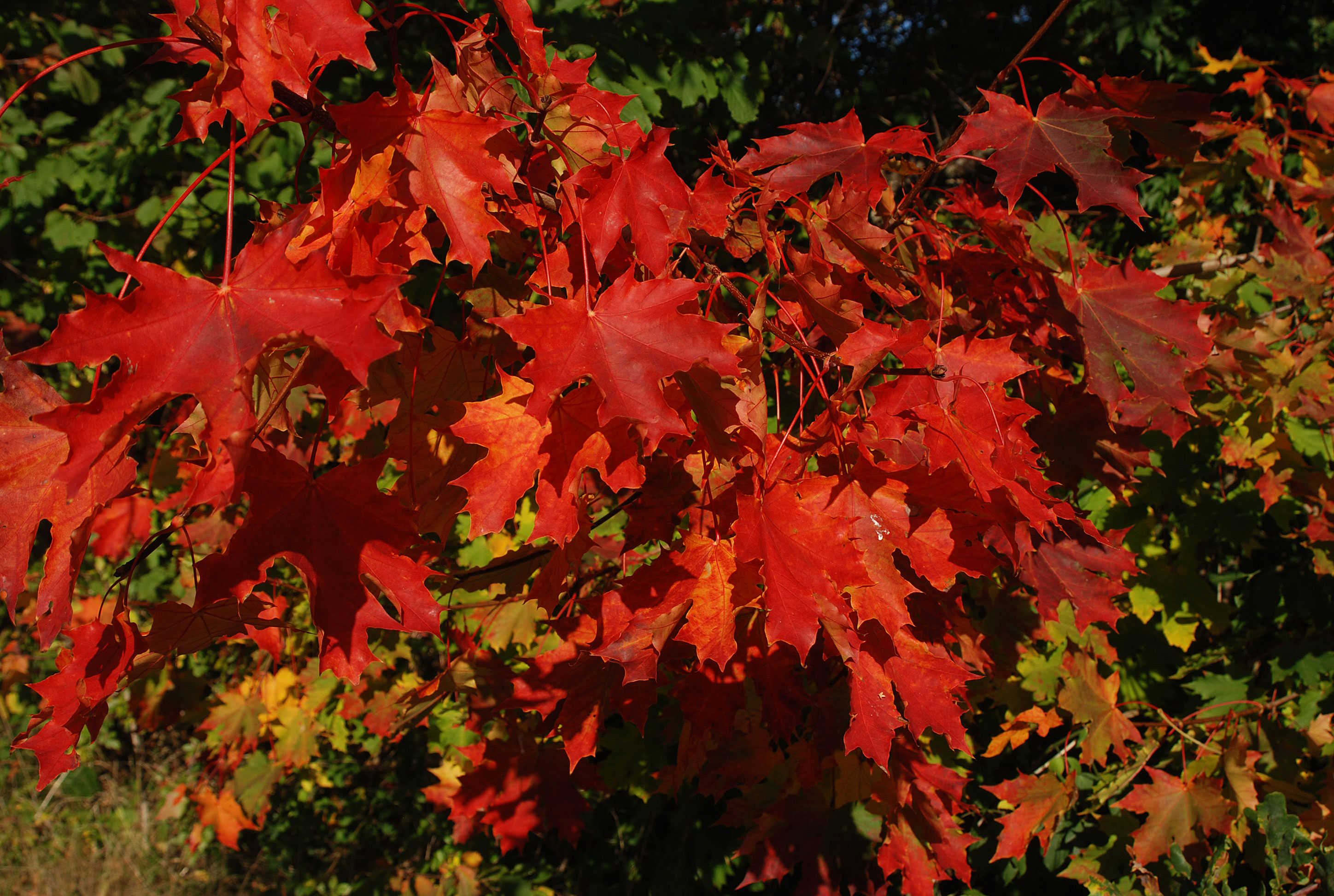 Spidsløn (Acer platanoides) har i nogle tilfælde et fantastisk smukt efterårsløv. Kendt af mange er "Ekkodalslønnen", tryk her , men også her i Døndalen har en af de mange Spidsløn et ildrødt efterårsløv.