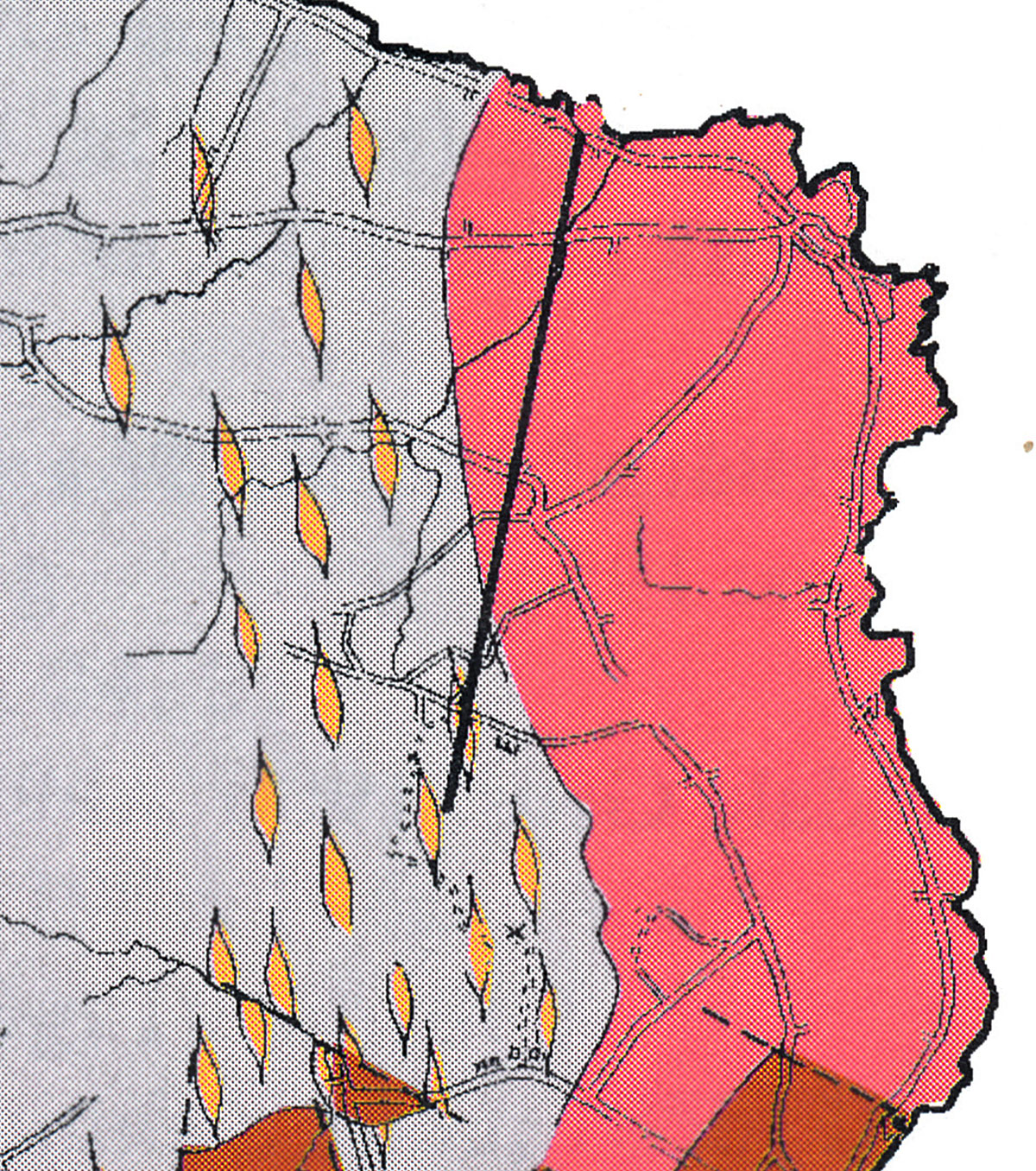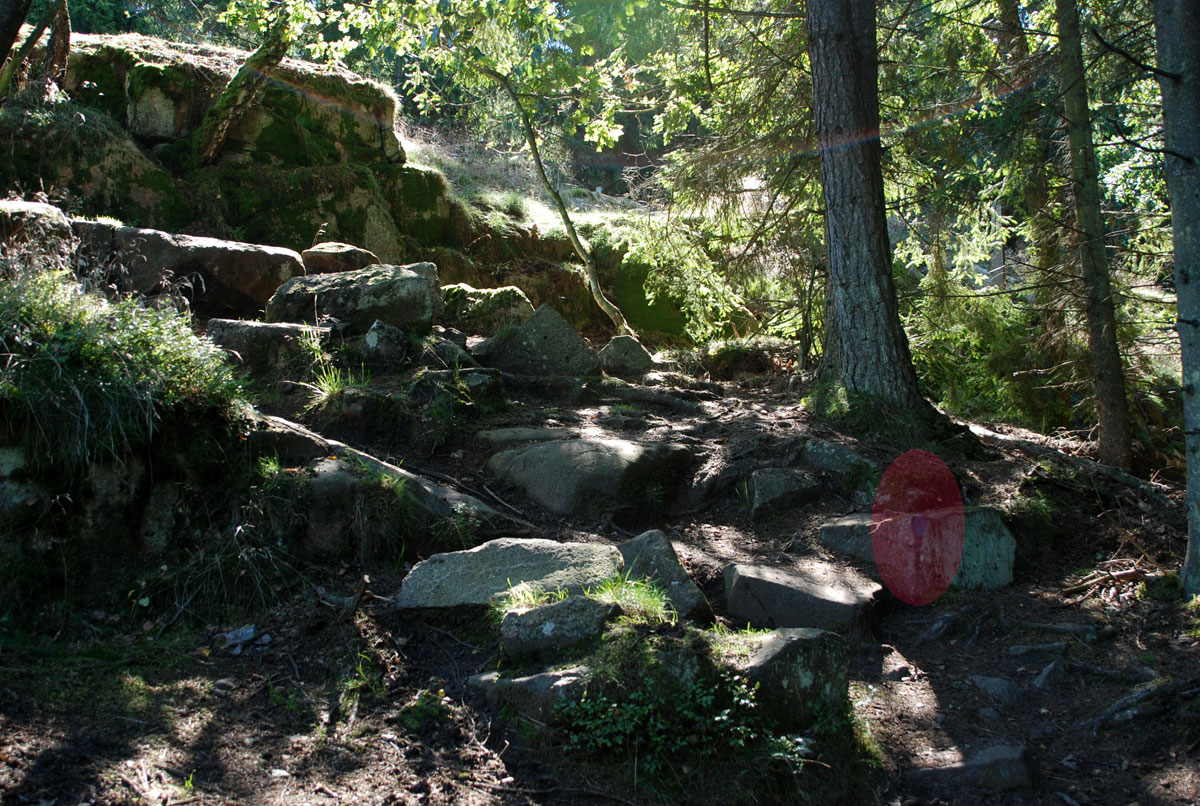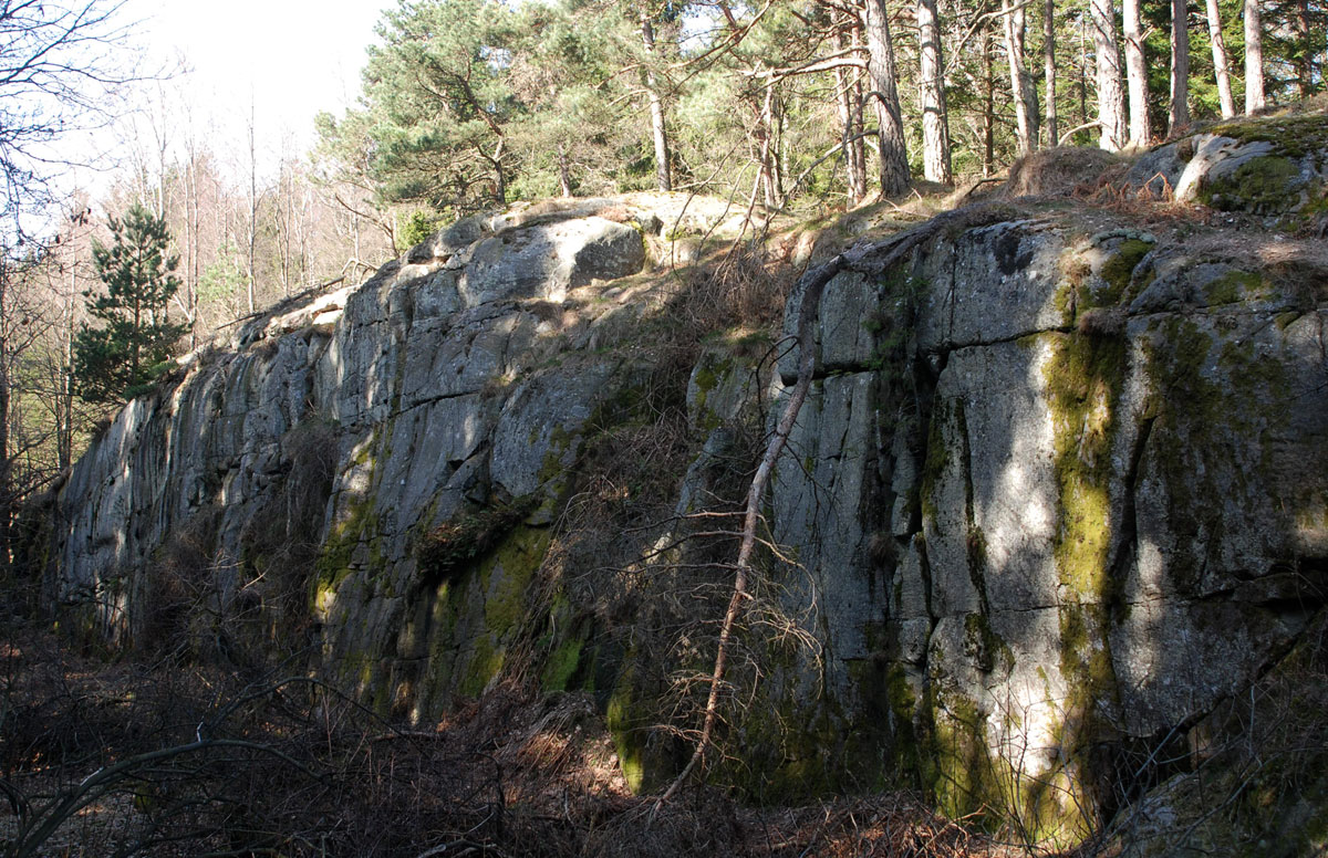 NV for Midterpilt finder man på stien ned ad Tamperdals sydskråning en større diabasgang, der i lige linje fortsætter mod NØ til Gule Hald i Listed.