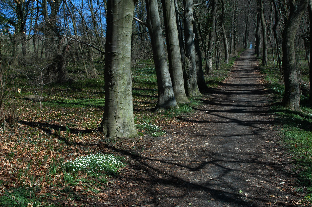 I skoven langs cykelstien op til Enesgård, det tidligere Hotel Jons Kapel, er der i det tidlige forår en flot repræsentation af den bornholmske flora.