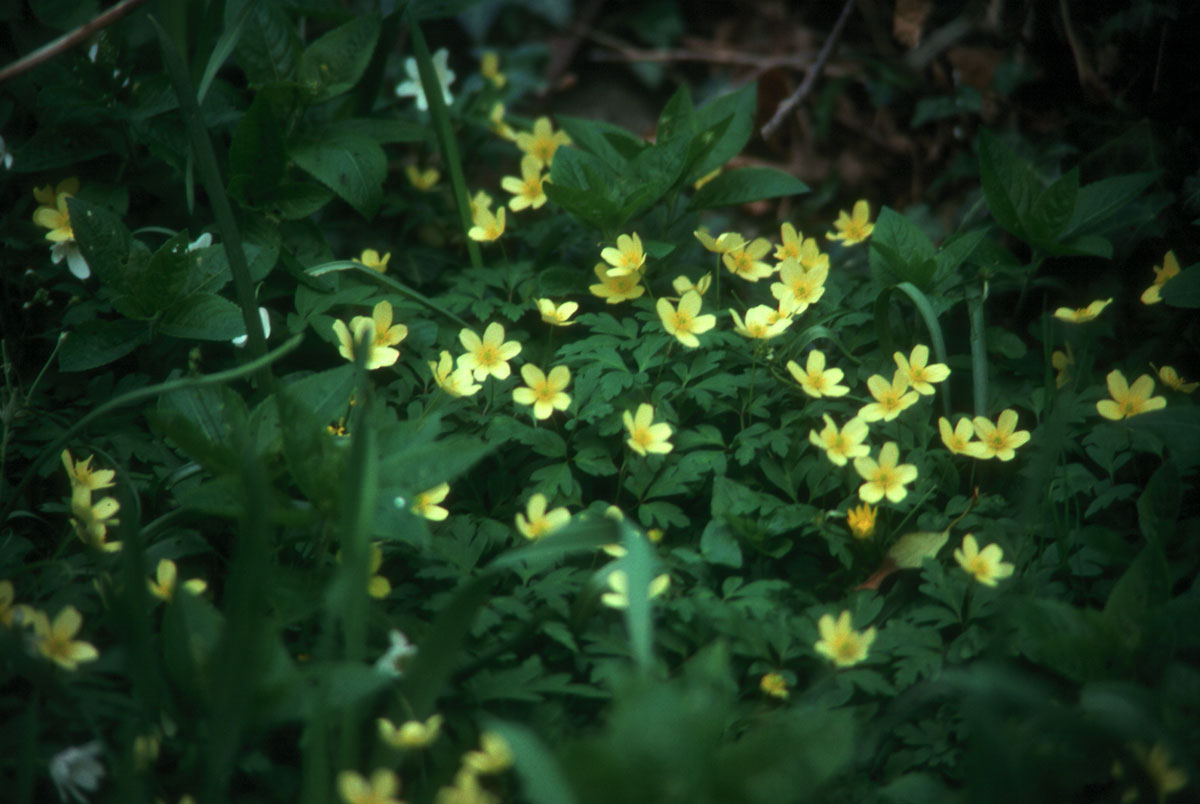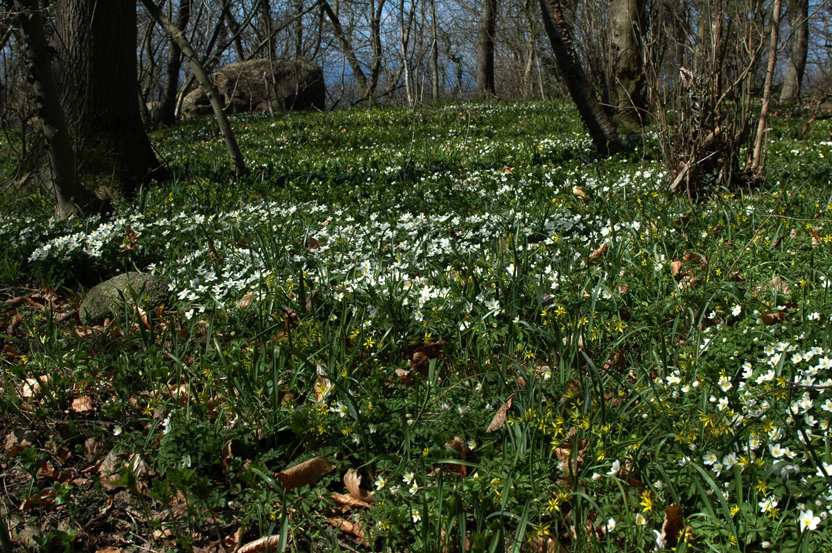 Både Hvid og Gul Anemone står arealdækkende pletvis med kloner af den sjældnere Svovlgul Anemone.