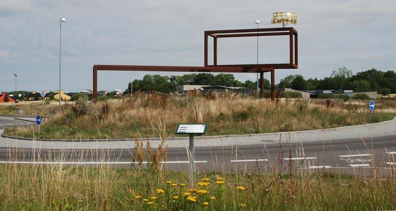 Det er kunstneren Niels Erik Gjerdevik, der i sit værk med to containerrammer og en gylden vejrhane forsøger at illustrere, at "Bornholm som en ø er afhængig af kommunikation, infrastruktur og vejret for at kunne eksistere i en global verden".