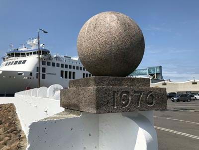 I indfaldsvejen til Rønne fra øst - fra råstofgravene - er der i den nye rundkørsel for foden af Snorrebakken rejst et kunstværk kaldet "Samhandel og transport".