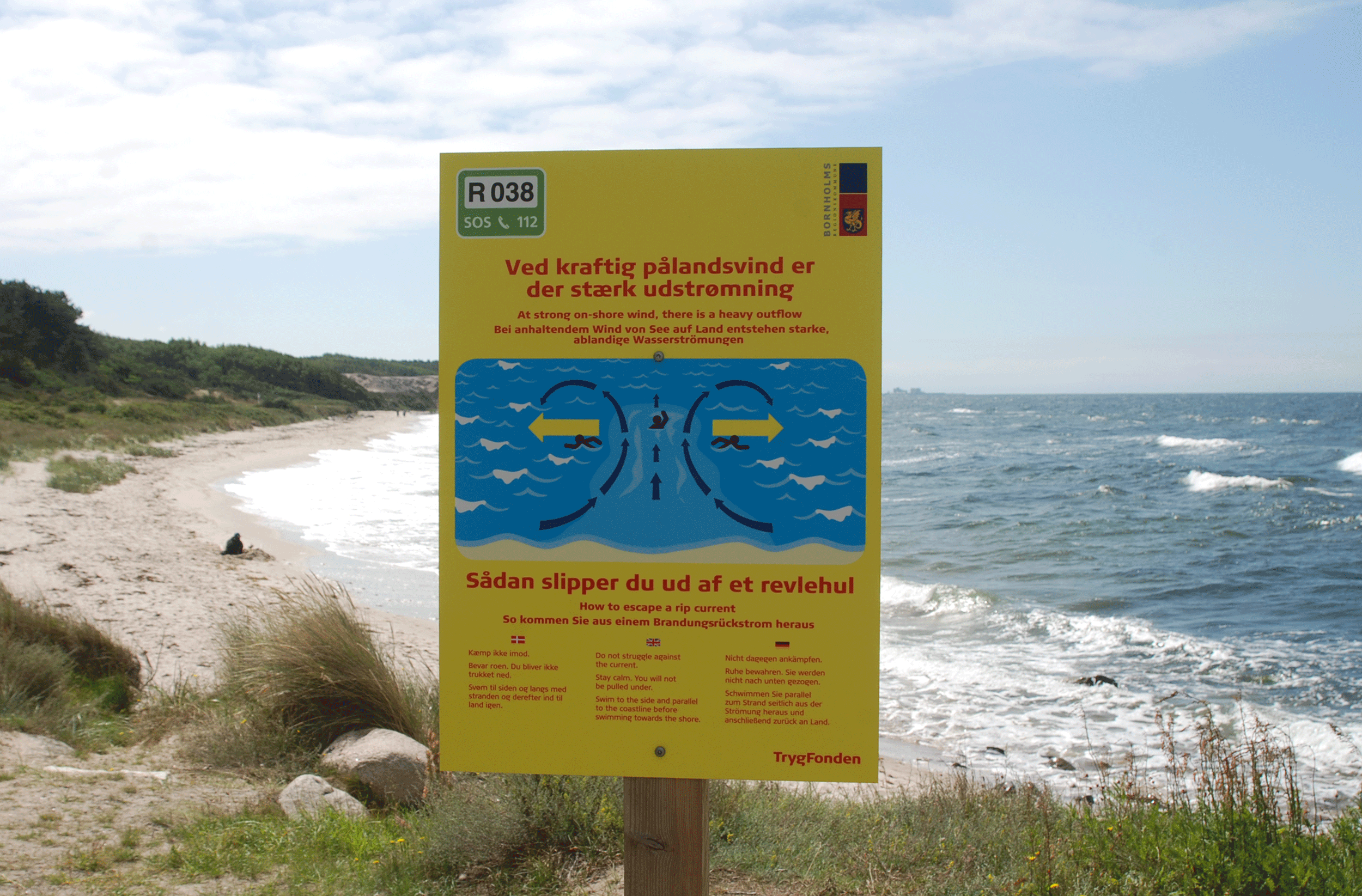 Det gør, at det er forbundet med stor livsfare at bade her ved bare en let pålandsvind, da strømmen af vand under alle omstændigheder skal søge tilbage ud på den ydre side af det vandstandsende rev!