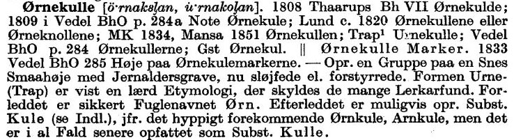 Forklaringen af Ørnekullerne, som det er beskrevet i "Bornholmske Stednavne".