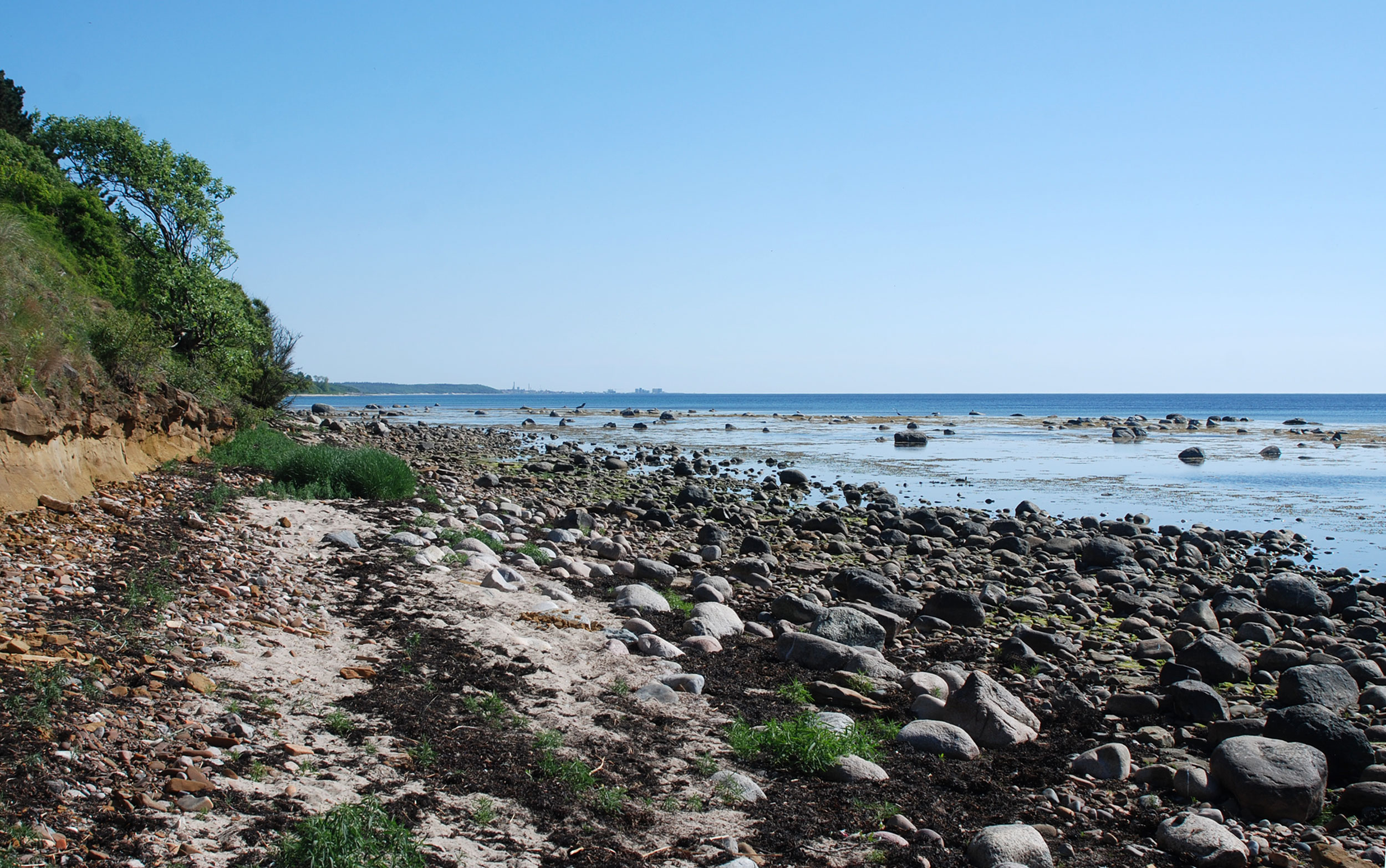 Hasle Klint og det hårde siltstenslag er ved at forsvinde fra overfladen ved Peder Olsens havn.