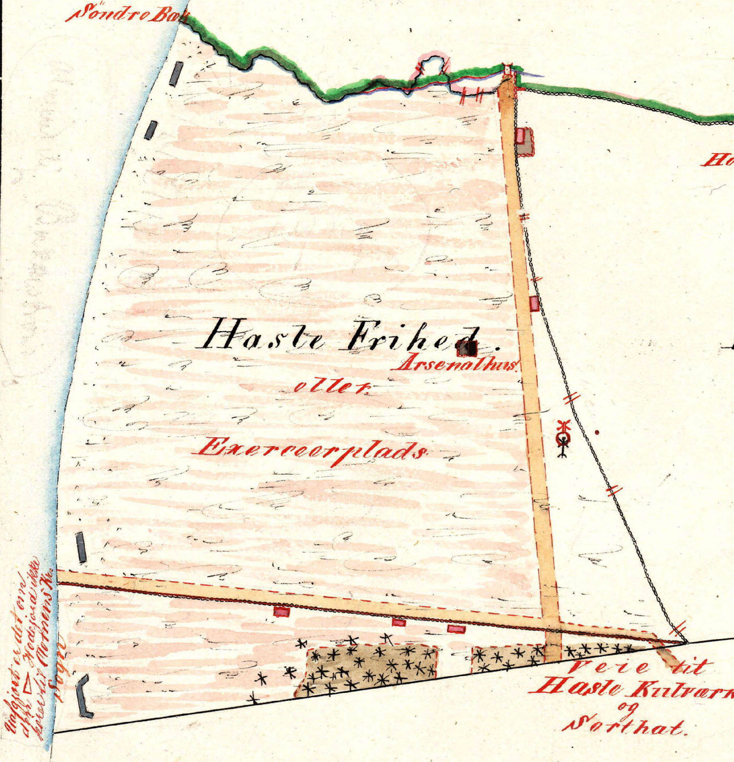 "Toget" kørte over Hasle Fælled med excerceerplads og skydebane fra 1863 og videre ind i skoven, som blev plantet i anden halvdel af 1800-tallet.